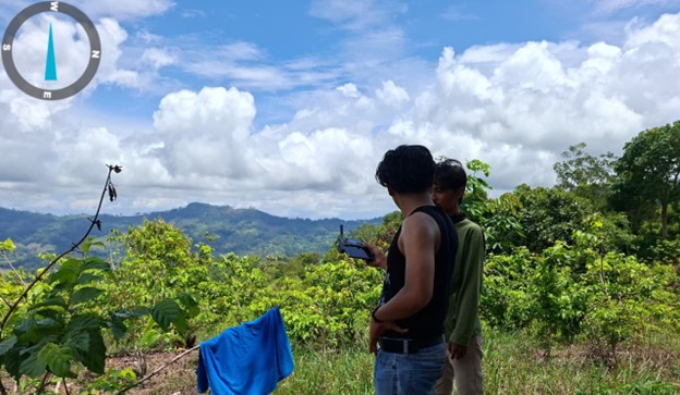 Dalam kegiatan ini, tim mengombinasikan metode teknologi modern. Penggunaan drone menjadi instrumen krusial untuk mendapatkan gambaran visual tutupan lahan secara presisi di area yang sulit dijangkau melalui jalur darat.