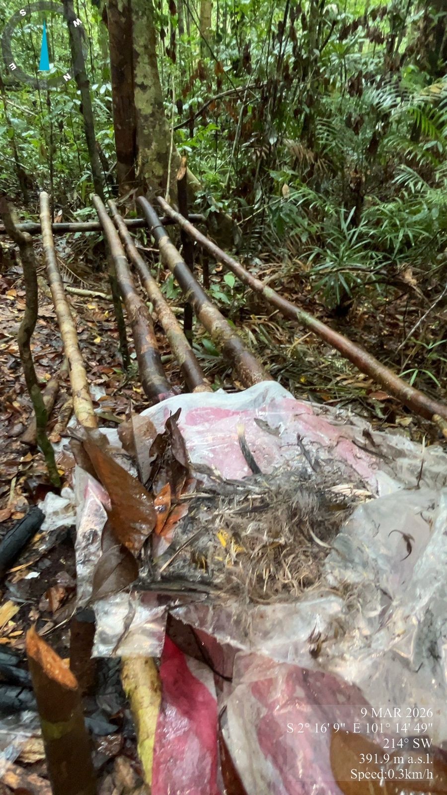 - Temuan Alat Perburuan: Ditemukan ranting yang dimodifikasi untuk memikat burung serta bulu burung yang diduga hasil perburuan liar.