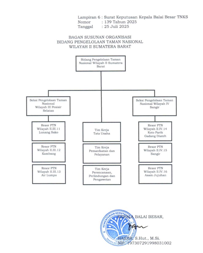 Struktur Organisasi Bidang Pengelolaan Taman Nasional Wilayah II Sumatera Barat